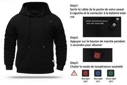 ÉCONOMISEZ 15%Sweat à Capuche Chauffant USB Homme – 5 Zones